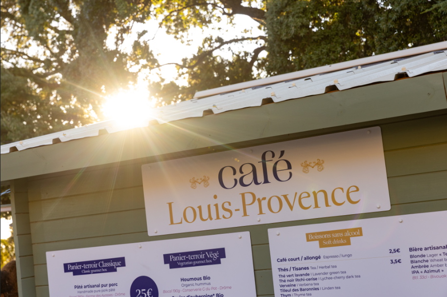 Le Café Louis-Provence propose une nouvelle formule de restauration simple et conviviale sur le principe d’un panier-terroir. Au menu, des produits locaux pour un partage convivial dans un cadre sublime, une carte de boissons locales, une belle sélection de thés/cafés et des douceurs pour les en-cas gourmands.