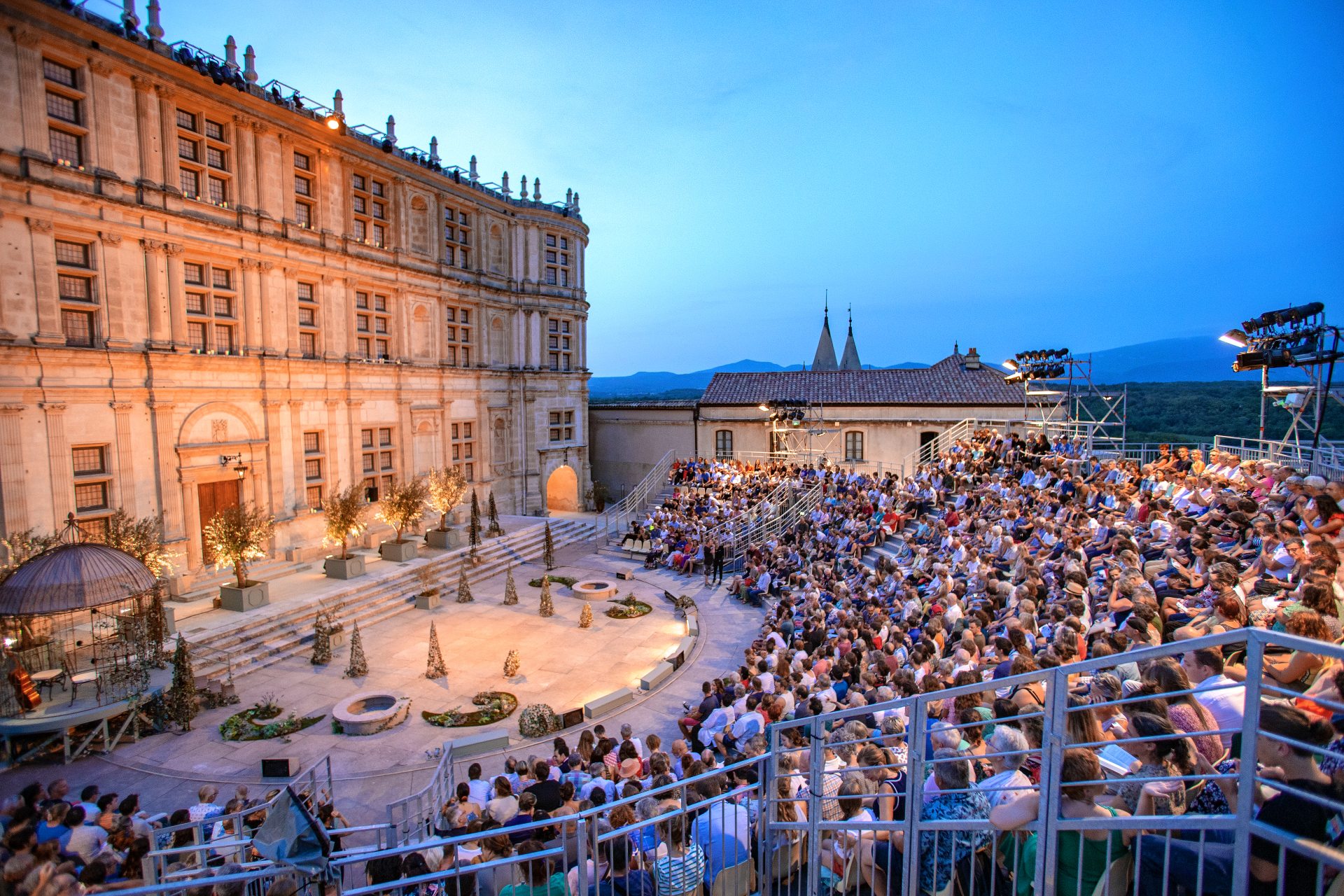 Châteaux de la DrômeLes Fêtes nocturnes du château de Grignan : un cadre somptueux et une expérience exceptionnelle pour réunir le temps d’une soirée vos amis, vos collaborateurs, vos relations professionnelles. Visite privée, places de spectacle de première catégorie, cocktail dînatoire ou repas raffiné.